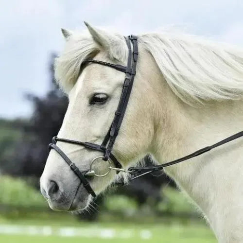 Das englisch kombinierte Reithalfter sorgt für eine gleichmäßige Druckverteilung und eine ruhige Lage der Trense, während das Pferdemaul geschont wird.
